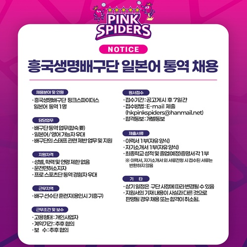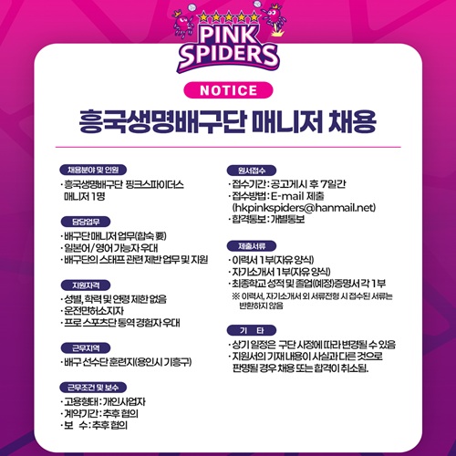 SPYDER x 흥국생명배구단 핑크스파이더스 어센틱 유니폼 예약 판매일정 안내